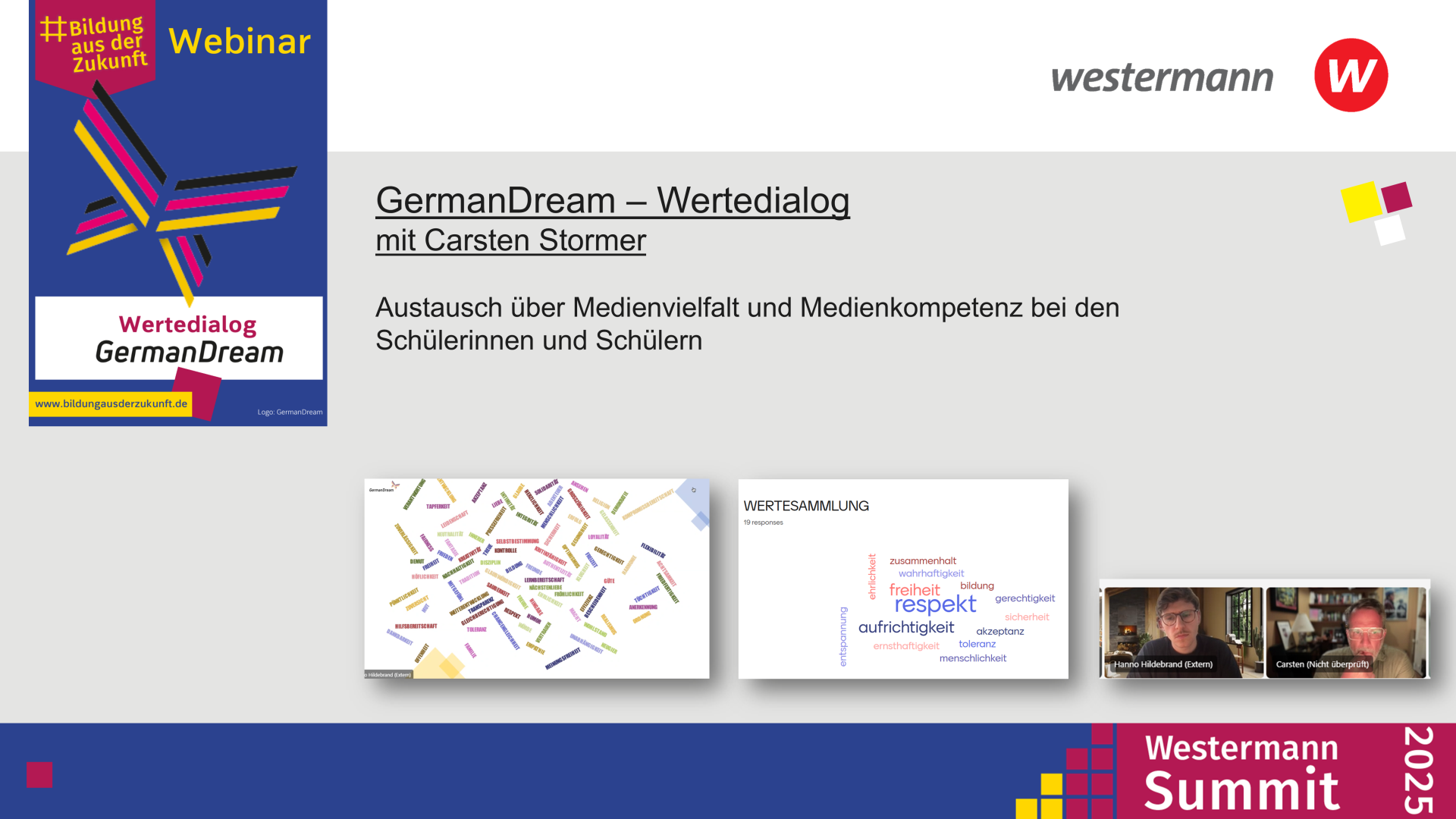„Der Westermann Summit hat gezeigt, wie wichtig es ist, aus unterschiedlichen Perspektiven auf das Thema Demokratiebildung zu blicken“, erklärt Westermann-CEO Sven Fischer, „es ist klar geworden, dass die Schule ein zentraler Ort ist, um für den Wert der Demokratie zu sensibilisieren, demokratische Prozesse einzuüben und die Resilienz gegenüber Desinformation zu stärken. Schulen und Lehrkräfte dürfen dabei nicht allein gelassen werden. Wir haben heute aber auch gehört, was gegen Demokratieskepsis helfen kann – von Projekten wie dem Schulzoo, in denen junge Menschen Verantwortung übernehmen, bis hin zum Erlernen der notwendigen Fakten über Demokratie und des verantwortlichen Umgangs mit Informationen.“
